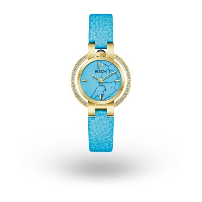 Rubaiyat es un nombre de gran significado poético y elegancia atemporal. Lanzada en 1917, la colección Rubaiyat marcó la serie debut de relojes de Bulova diseñados específicamente para la mujer. Ahora, más de un siglo después y con motivo de la celebración del 150.º aniversario de Bulova, la nueva colección de lujo Rubaiyat «Four Seasons» captura la elegancia de la línea Rubaiyat y la verdadera belleza de la naturaleza. El modelo Rubaiyat «Summer» deslumbra con 42 gemas de topacio azul —con un peso total de 0,25 quilates— que rodean su elegante caja tipo halo de 30 mm, elaborada en acero inoxidable con acabado en tono dorado y rematada con una corona de cabujón de espinela sintética. Su impactante esfera —protegida por un cristal de zafiro de doble curvatura— ha sido cuidadosamente elaborada a partir de turquesa reconstituida, evocando las cristalinas aguas tropicales, con vetas negras que garantizan la singularidad de cada pieza. Adornado con índices en forma de tabla de surf y combinado con una correa a juego de piel de becerro graneada —equipada con un cierre desplegable personalizado de doble pulsador—, este lujoso reloj femenino constituye una incorporación atemporal a cualquier colección y se presenta en un estuche especial Rubaiyat que incluye un libro conmemorativo.