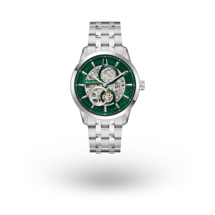 Experimente el sofisticado diseño del reloj automático con esfera esqueleto para hombre Sutton de Bulova.
