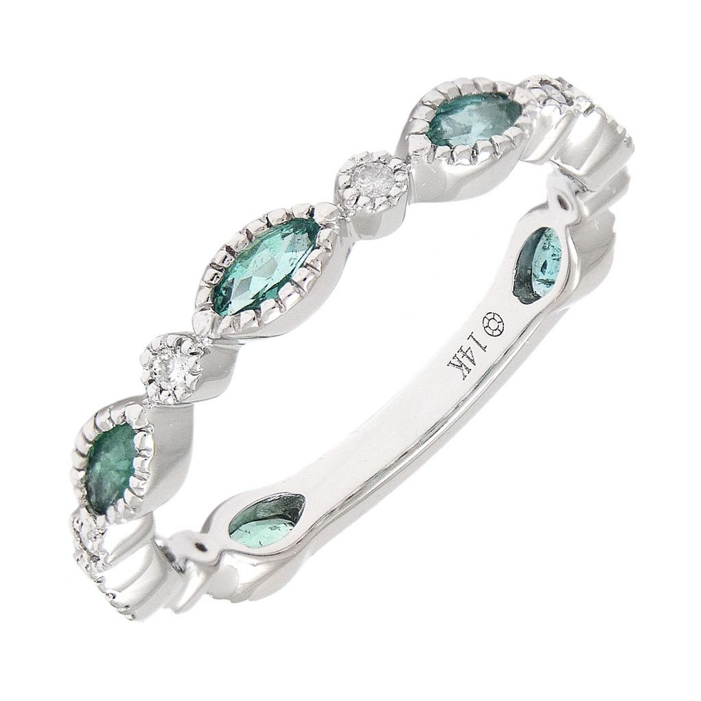 Anillo de oro blanco con esmeralda y bisel marquesa Anillo de esmeralda