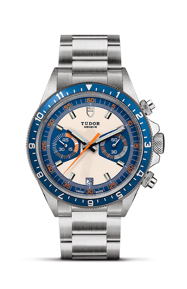 Caja 42 mm, acero, esfera azúl, cristal de safiro.
